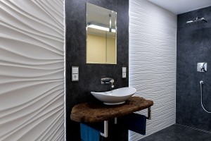 Das Erscheinungsbild einer Fliese wird neben dem Design auch entscheidend von der Oberflächenstruktur, der Textur und durch Glanz und Lichteinfall beeinflusst.